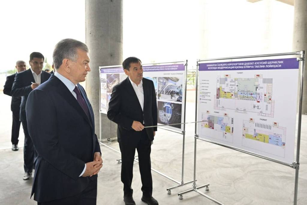 Президент ознакомился со строительными работами в аэропорту Намангана