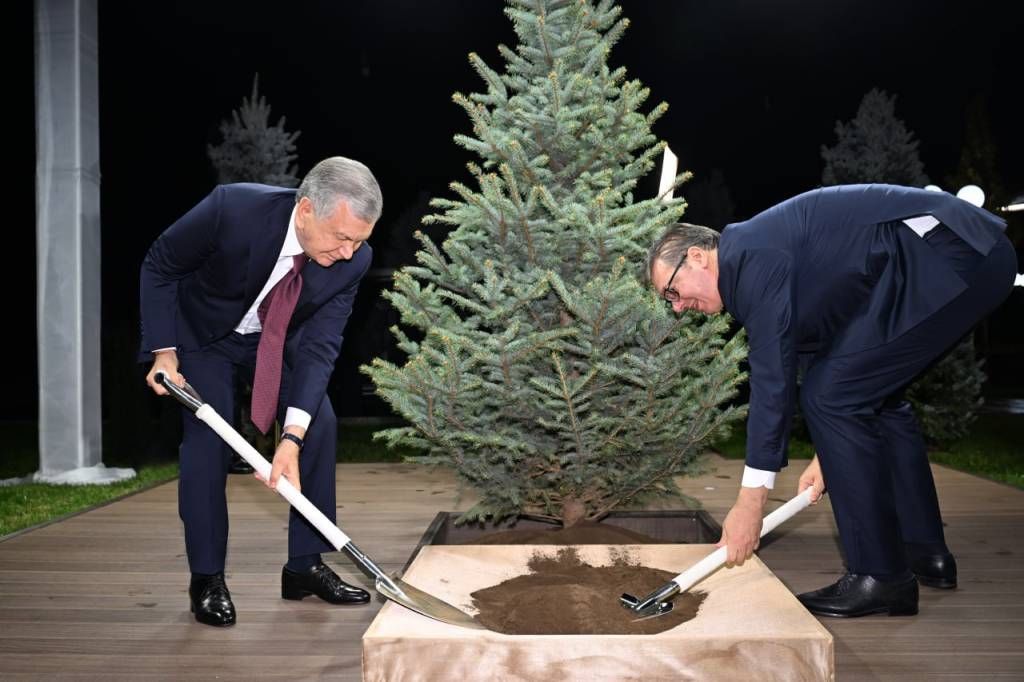 В завершение узбекско-сербских переговоров на высшем уровне в резиденции «Куксарой» состоялась церемония посадки дерева.