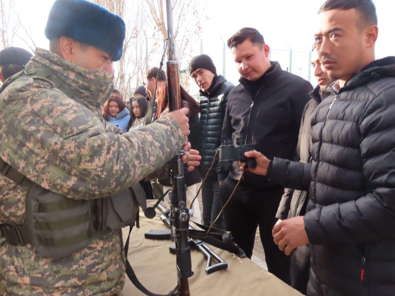 Әскерий бөлимге келген Ишки ислер министрлигине қараслы академиялык лицей ҳәм Нөкис инновация институтының оқыўшы-жасларына әскерий хызметкерлер тәрепинен қурал-жарақ, әскерий техникалардан пайдаланыў ҳәм олардың ўазыйпалары, қолға үйретилген хызмет ийтлери туўралы мағлыўматлар берилди.