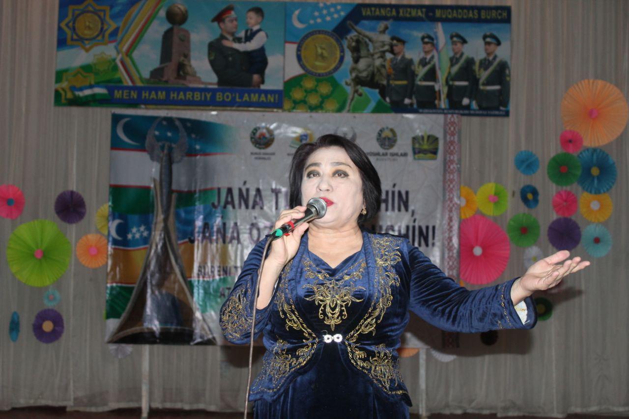Онда Арқа-Батыс әскерий округиниң топар командирлери, аға лейтенант С.Жамалов, киши сержант Ш.Эргашев, Өзбекстан мәмлекетлик көркем-өнер ҳәм мәденият институты Нөкис филиалы директорының ҳаял-қызлар мәселелери бойынша орынбасары О.Қыдырниязова, Республика Руўхыйлық ҳәм ағартыўшылық орайы Нөкис қалалық бөлими баслығы Қ.Нуратдинов ҳәм басқалар шығып сөйлеп, жыйналғанларды байрам менен қызғын қутлықлады.