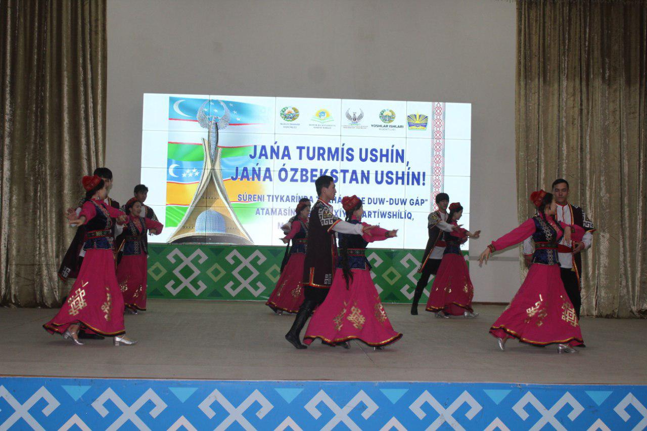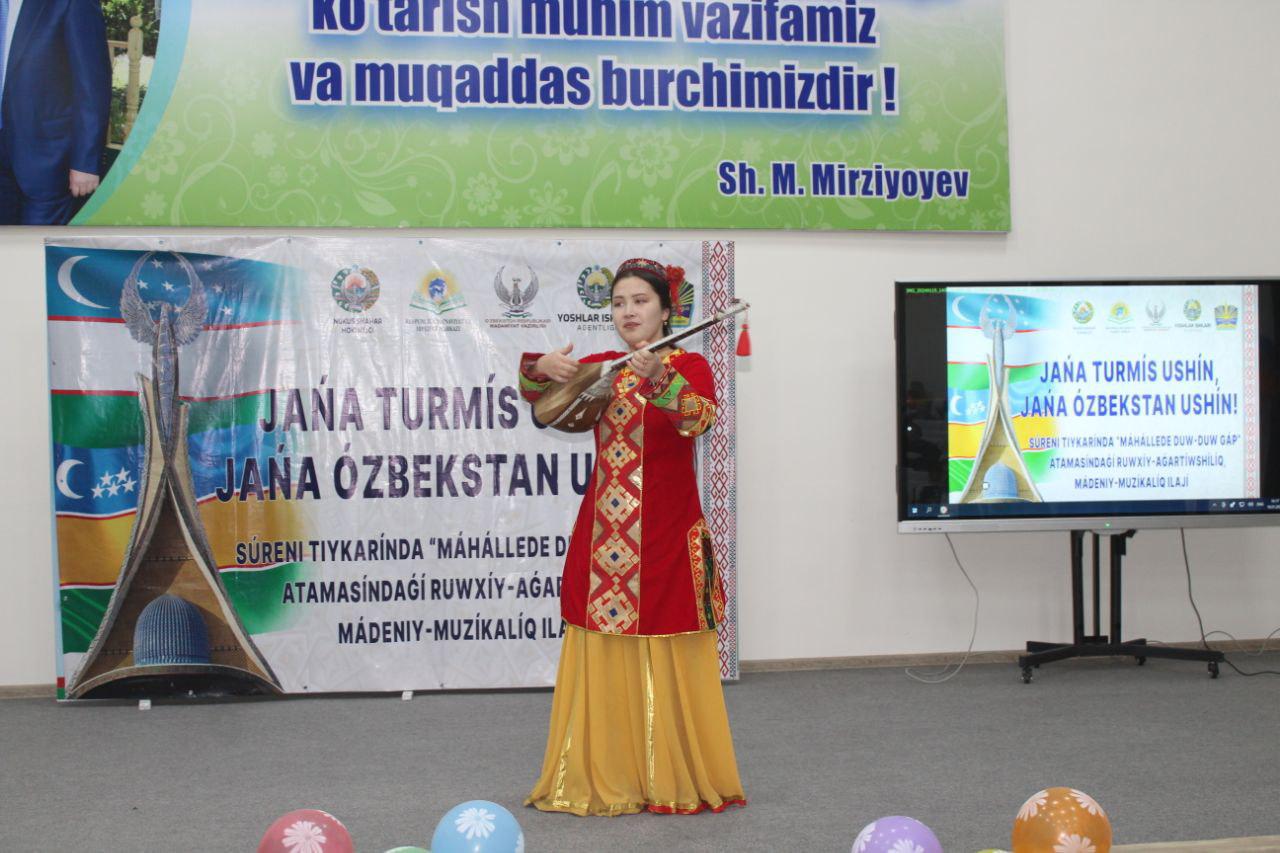 Илаж Өзбекстан мәмлекетлик көркем өнер ҳәм мәденият институты Нөкис филиалының студент-жаслары тәрепинен таярланған концерт бағдарламасы менен даўам етти.