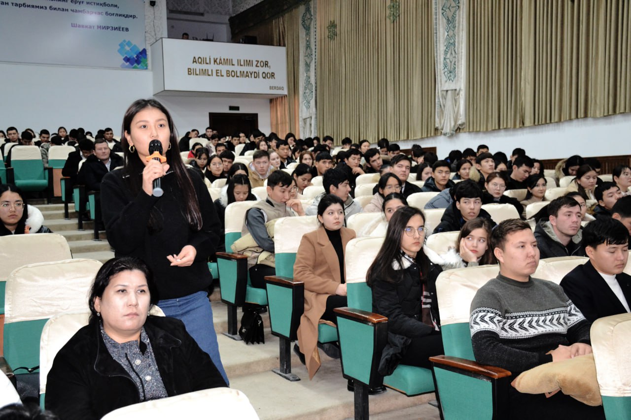 Бердақ атындағы Қарақалпақ мәмлекетлик университетиниң Мәденият сарайында O’zLiDeP Қарақалпақстан Республикасы Кеңесиниң басламасы менен “Депутат ҳәм жаслар” атамасында ушырасыў болып өтти.