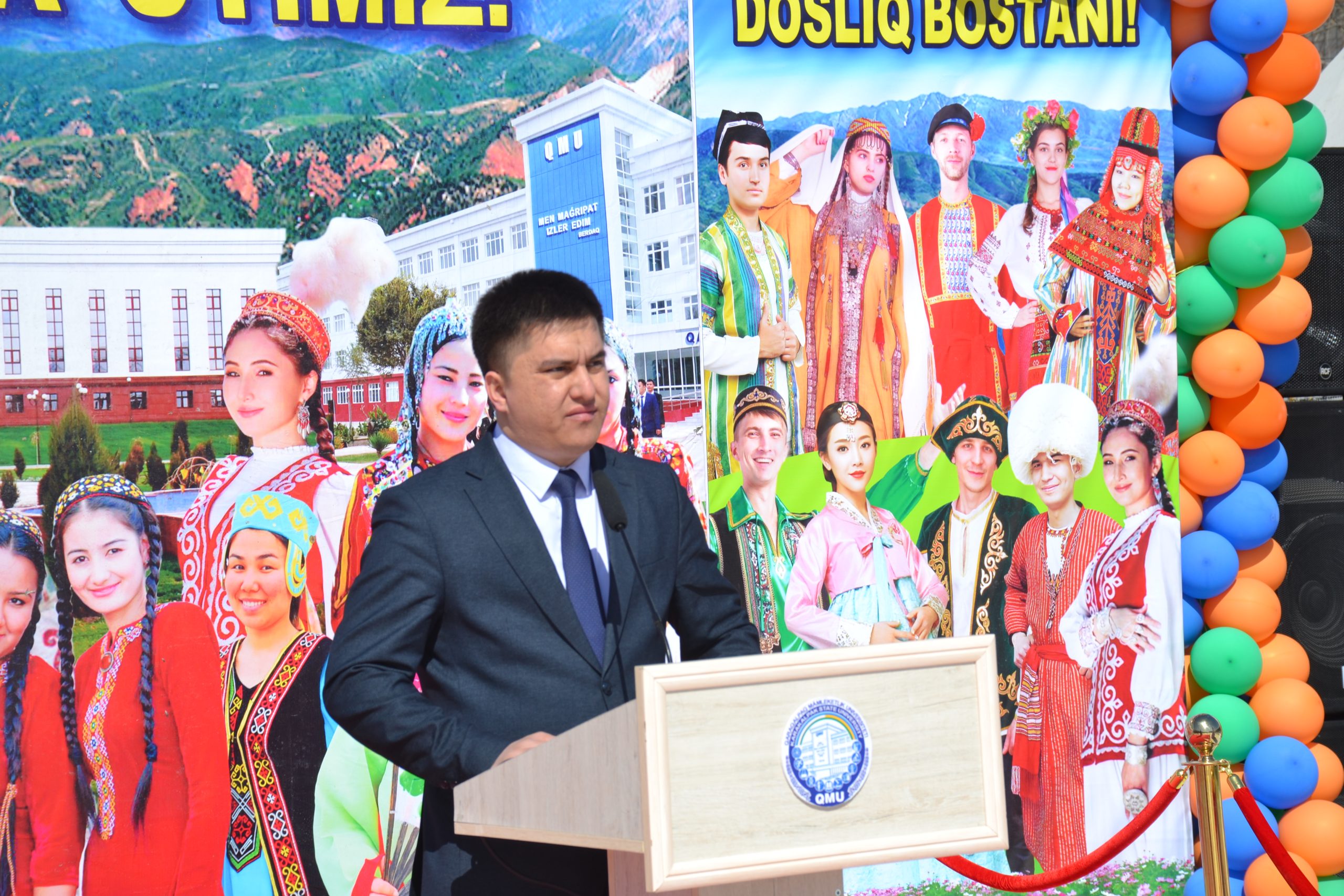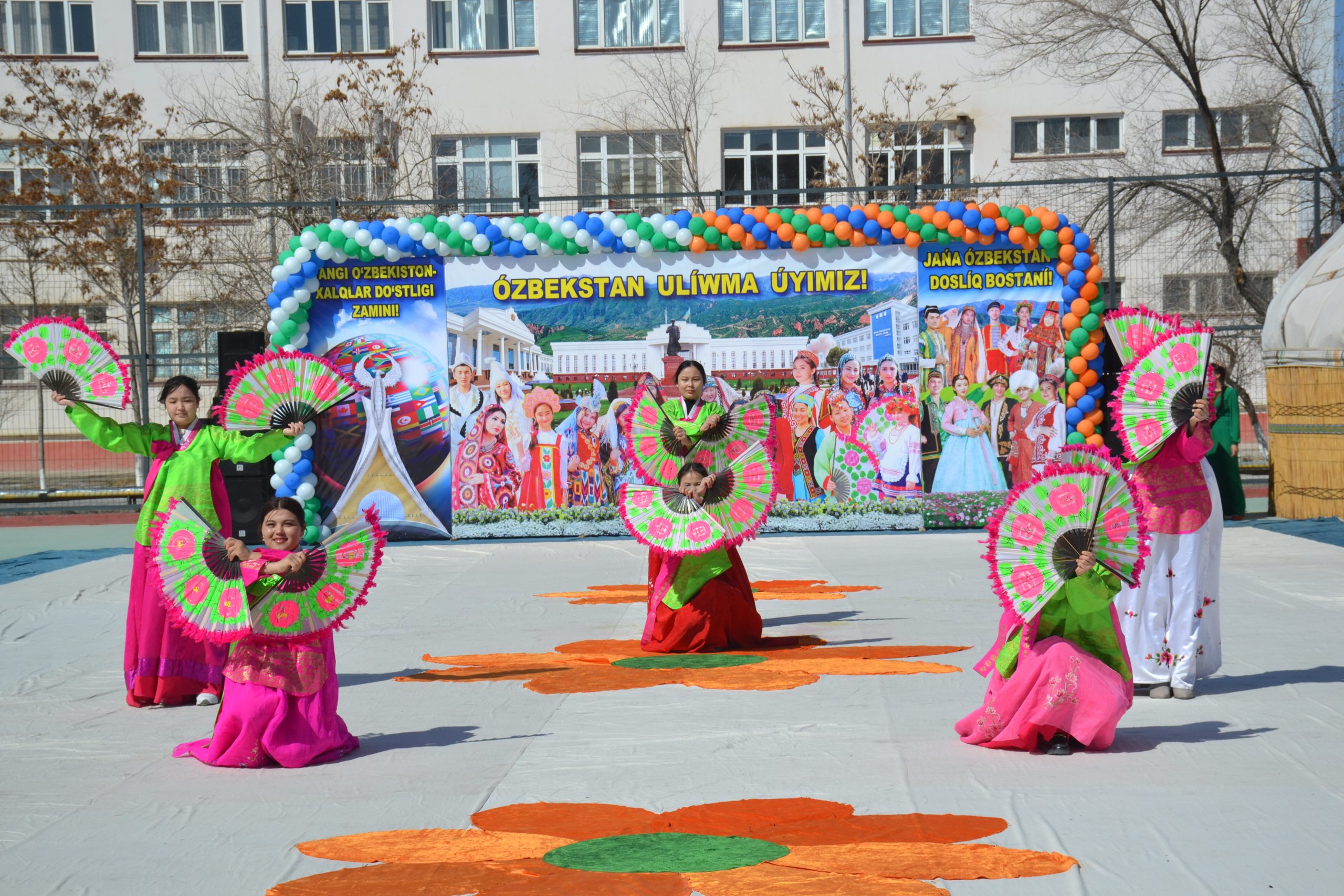Мийманлар дәслеп студентлер тәрепинен таярланған миллий кийимлерди, өнертменшилик үлгилерин, сүўретлер көргизбесин, түрли миллет ўәкиллериниӊ үрп-әдетлери менен спорт ойынларын тамаша етти. Сондай-ақ, халықлар дослығыныӊ нышаны сыпатында оқыў орныныӊ әтирапына жақсы нийетлер менен терек нәллери егилди.