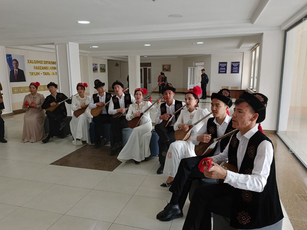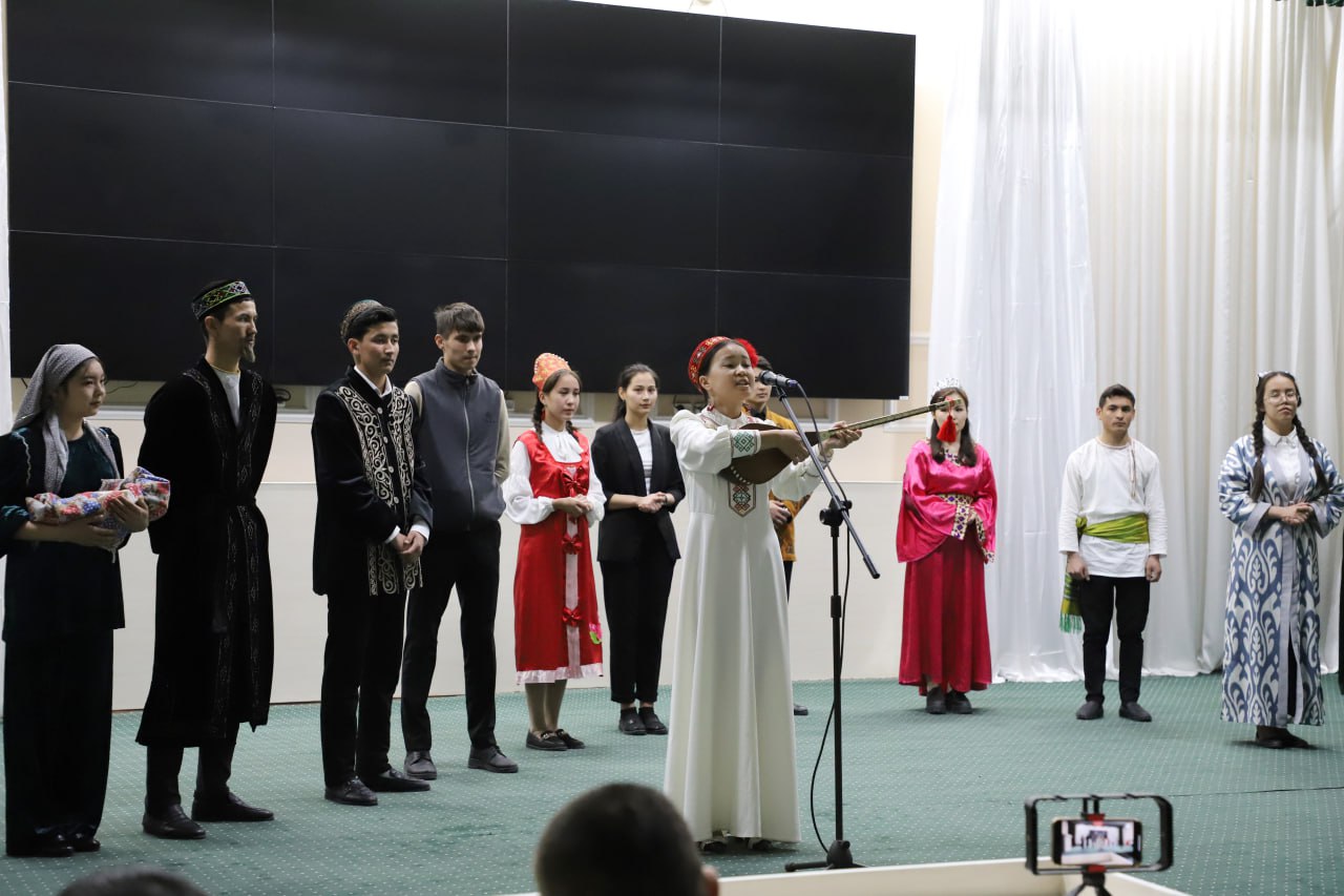 Илаж институттың қәбилетли студентлери тәрепинен шөлкемлестирилген сахналық көринислер ҳәм «Тумарис» халық ансамбли ағзаларының атқарыўындағы концерт бағдарламасы менен даўам етти.