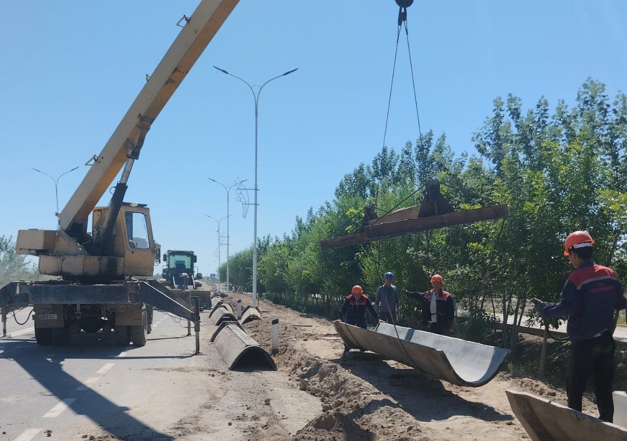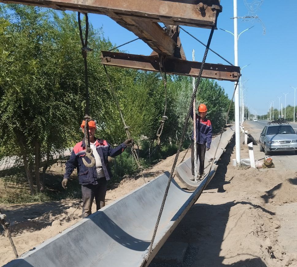 Тахтакөпир районындағы халықтың қыйтақ жер майданларын суў менен тәмийинлеў мақсетинде көше бойындағы жол бойлап темир бетон лотоклар орнатылмақта.