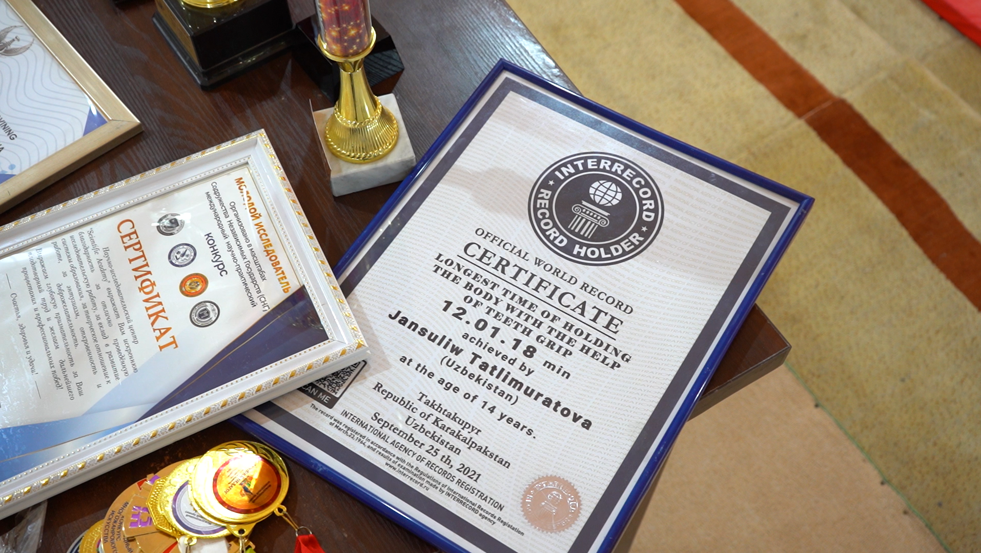 Гимнастикашы қыз дәслепки мәрте 2021-жылы өз денесин 12 минут услап турып рекордлар китабына кирген болса, кейинги рекордты 13 минут 1 секунд турып және өзи жаңалады.
