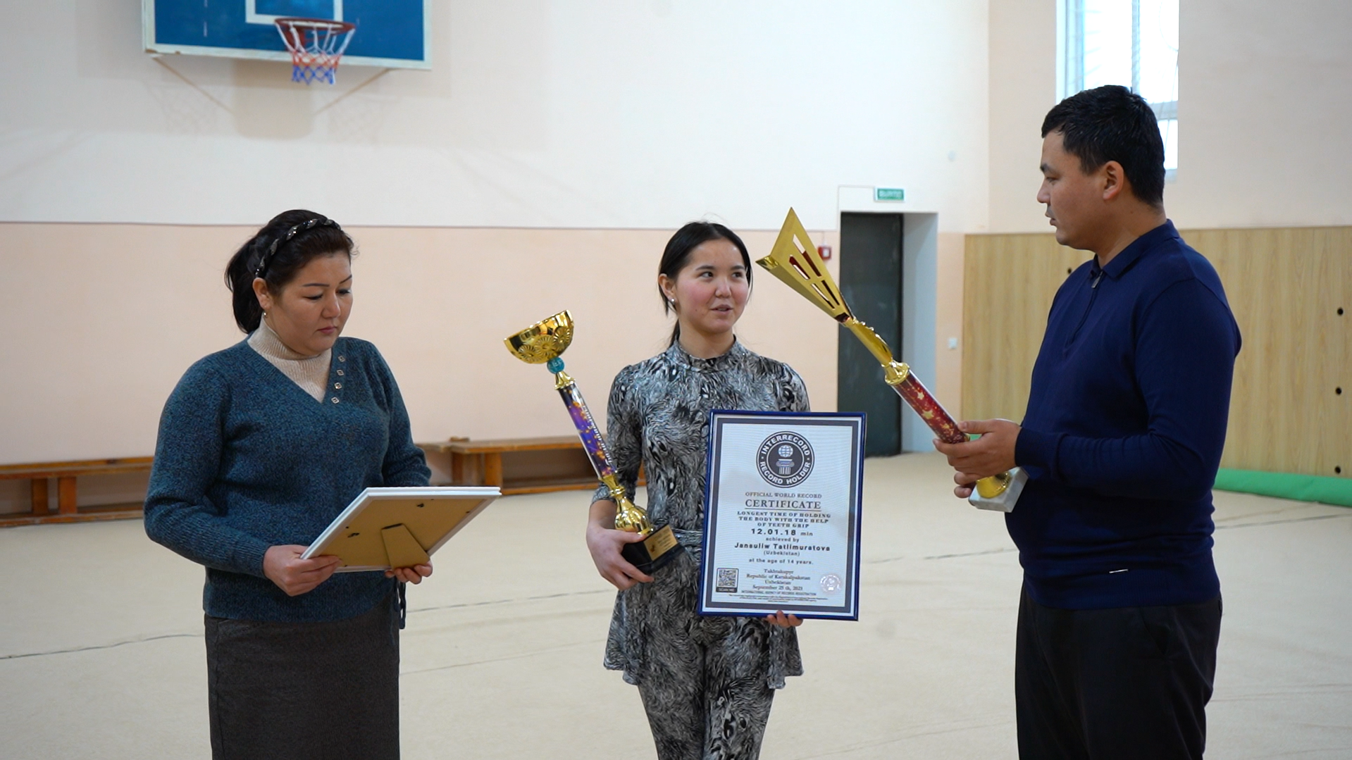Республикамыздың Тахтакөпир районында жасаўшы 17 жасар қызы Жансулыў Татлымуратова өз денесин тисинде услап турыў бойынша 2 мәрте Гиннестиң рекордлар китабынан орын алған. Дәслепки рекорд буннан төрт жыл алдын орнатылған болса, екинши рекордты усы жылы және өзи жаңалады.