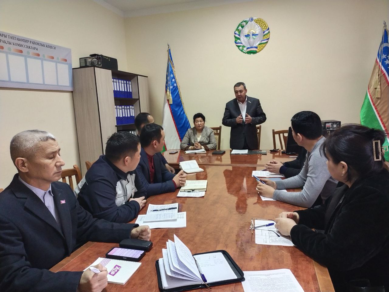 2025-жыл 28-январь куни Тахтакөпир районы ҳәкимлигинде депутат Б.Алдамуратов, Жоқарғы Кеңес депутаты А.Аллаярова, район ҳәкиминиң экология мәселелери бойынша биринши орынбасары Т.Тохымбетов, районлық Кеңестиң депутатлары, ҳәкимликтиң бас қәнигеси, экология, электр, газ тәмийнаты кәрханалары ҳәм санитар тазалаўға қәнигелестирилген “Глобол позицион систем” ЖШЖ басшыларының қатнасыўында мәжилис болып өтти.