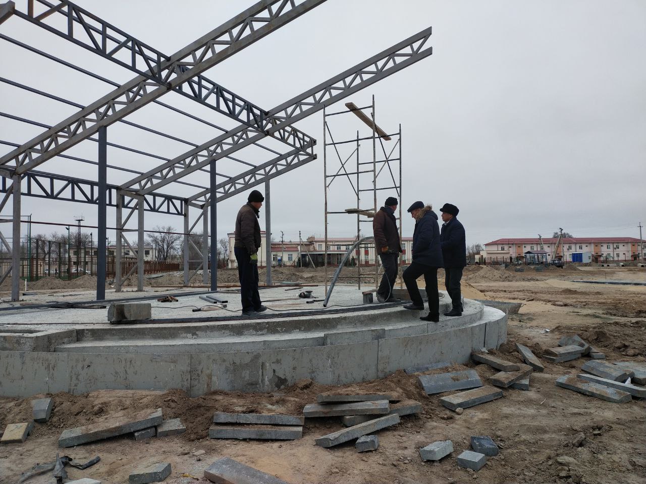 Депутат Б.Алдамуратов, район ҳәкиминиң қурылыс бойынша орынбасары Пердебай Ерназаров ҳәм Халық депутатлары Тахтакөпир районлық Кеңеси секретариат баслығы Тимур Жусиповлар районда жаңадан қурылып атырған “Жаслар орайы” имараты менен де жақыннан танысты.