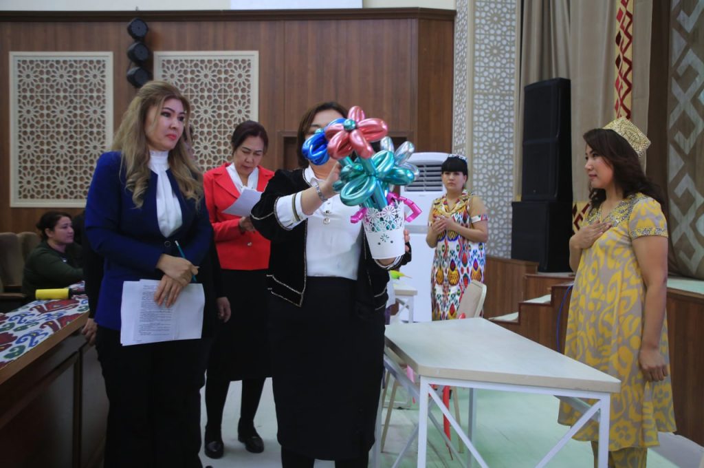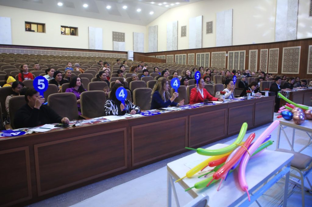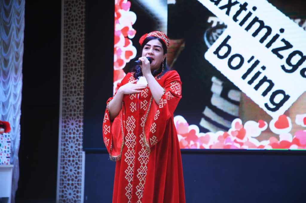 Жарыстың “Мен бахытлы ҳаялман” шәртинде қатнасыўшылар көркем өнер шеберлигин көрсетип, қосықлар ҳәм халық ойынлары жәрдеминде өз шаңарақларын таныстырыўы керек болды.