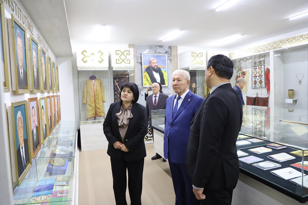 Дәслеп академик институттағы Әжинияз музейинде болып, бул жердеги экспонатлар менен танысты. Соң институтта жаслардың оқыўы, билим алыўы, теориялық билимлерин беккемлеўи ушын жаратылған шараятларды көрип, лабораториялар, мәлимлеме-ресурс ҳәм IT-инкубациялық орайларының жумыслары менен танысты.