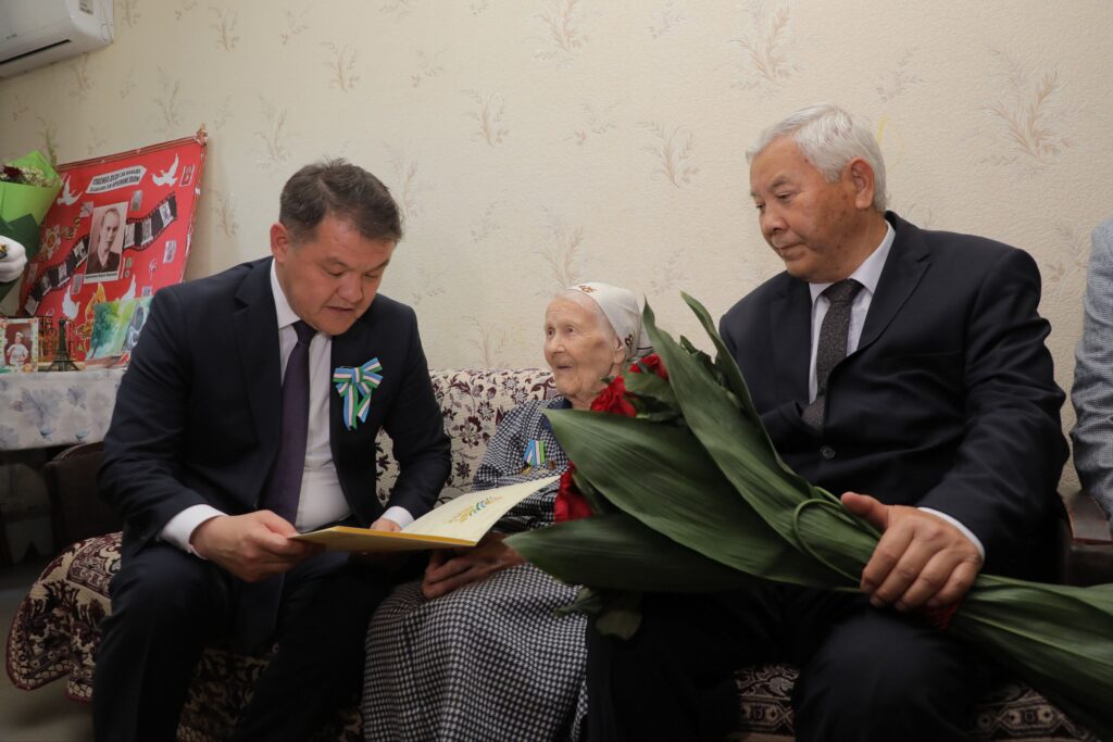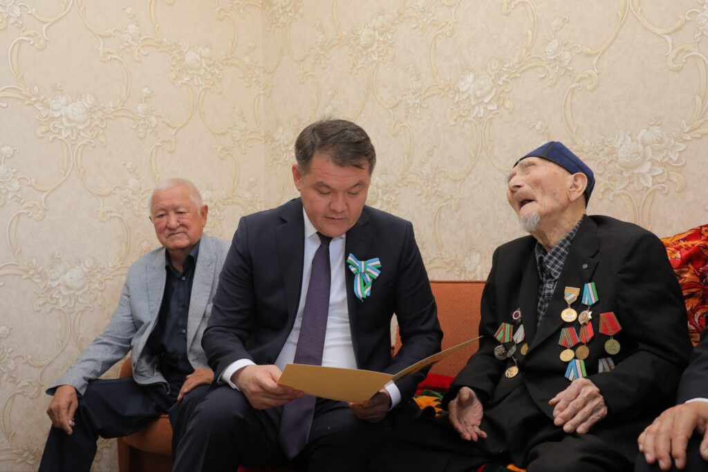 Ветеранларды 9-май – Еслеў ҳәм қәдирлеў күни улыўмахалықлық байрамы, сондай-ақ, Екинши жер жүзилик урыста фашизм үстинен ерисилген жеңистиң 80 жыллығы менен қызғын қутлықлап, Өзбекстан Республикасы Президентиниң байрам қутлықлаўы оқып еситтирилди.