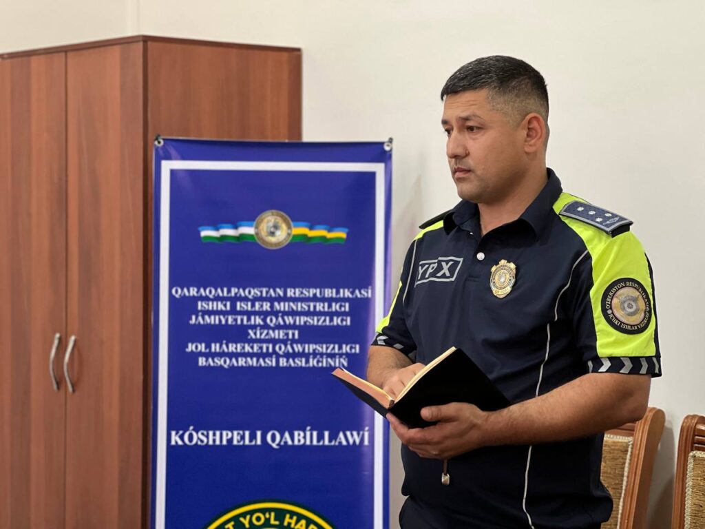 Бүгинги күнде халықтың мәпин гөзлеп, машқалаларды үйрениў ҳәм оларға орнында шешим табыў мақсетинде түрли аймақларда жуўапкер басшылар тәрепинен көшпели қабыллаўлар өткерилип келинбекте. Усындай илажлардан бири Қарақалпақстан Республикасы Ишки ислер министрлиги Жәмийетлик қәўипсизлик хызмети Жол ҳәрекети қәўипсизлиги хызмети баслығының орынбасары, подполковник Б.Бобобеков басшылығында Беруний районында шөлкемлестирилди.
