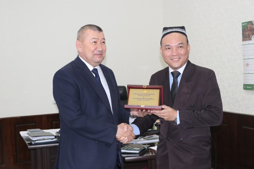 Сырт елли мийманларды Қарақалпақстан Республикасы Министрлер Кеңеси Баслығының жаслар сиясаты, социаллық раўажландырыў ҳәм руўхый-ағартыўшылық ислери бойынша орынбасары Б.Отемуратов рәсмий түрде қабыл етти. Ушырасыў даўамында еки тәреплеме билимлендириў байланысларын кеңейтиў, тәжирийбе алмасыў ҳәм биргеликтеги жойбарларды жолға қойыў мәселелери додаланды.