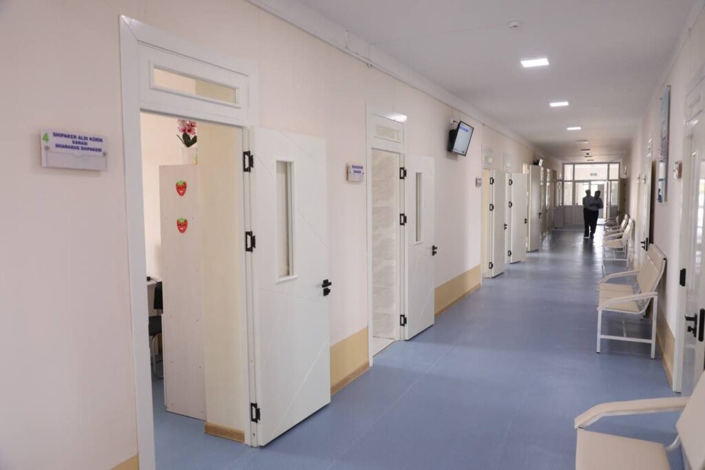 Поликлиникада улыўма әмелият шыпакерлери, балалар ҳәм ҳаял-қызлар шыпакерлери, лаборатория және диагностика бөлимлери жумыс баслады. Заманагөй медициналық үскенелер, қолайлы қабыллаў ханалары ҳәм жақты интерьер наўқаслар ушын жеңиллик жаратады, әлбетте.