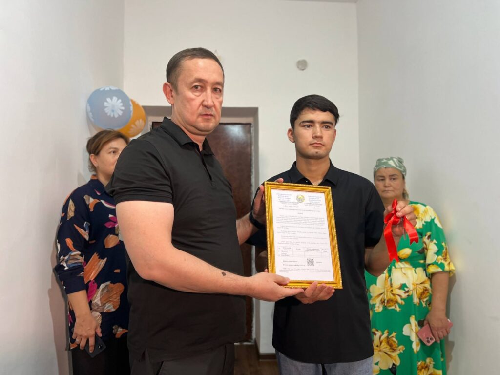 Инсан социаллық хызметлер орайы Беруний районы бөлими тәрепинен Сухроб Юлдашевқа Тоқимачи мәҳәллесинде берилген бул квартира, байрам алдынан оның ушын үлкен саўға болды. Ҳәзир студентлик дәўирин басынан өткерип атырған, илим тараўында жоқары шеклерди гөзлеп атырған С.Юлдашев келешекте өз қәнигелиги бойынша жетик кадр сыпатында елимизге хызмет етиў тилегин билдирди.