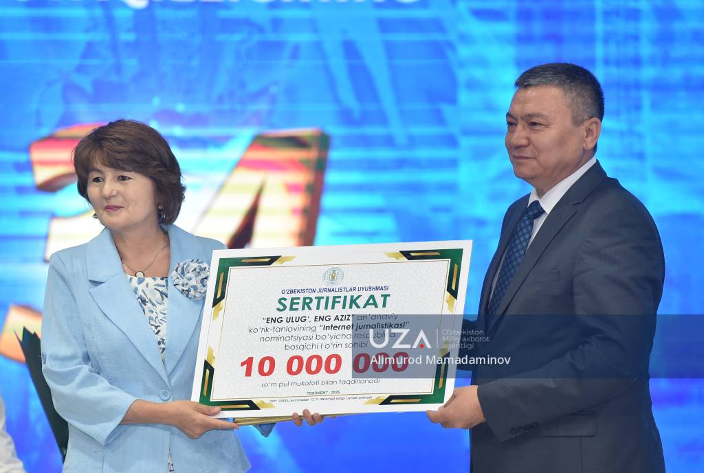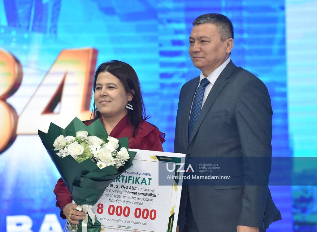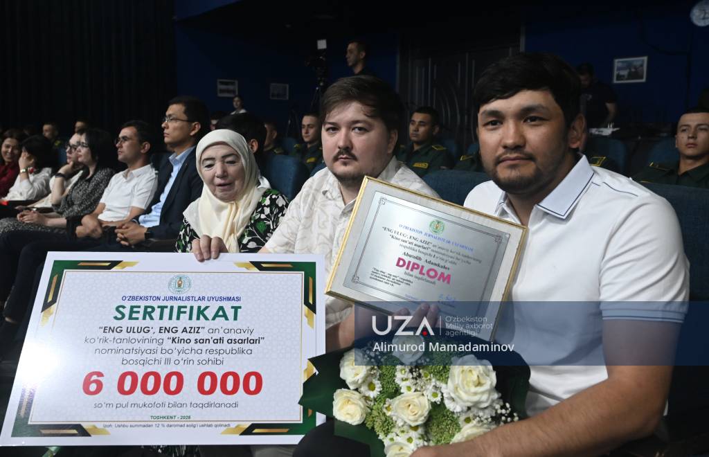 Өзбекстан Республикасы Президенти Шавкат Мирзиёевтиң 2025-жыл 10-июльдеги “Өзбекстан Республикасы мәмлекетлик ғәрезсизлигиниң отыз төрт жыллық байрамына таярлық көриў ҳәм оны өткериў ҳаққында”ғы қарары ҳәм Министрлер Кабинетиниң тийисли мәжилис протоколының орынланыўы шеңберинде “Ўатан ушын, миллет ушын, халық ушын!” бас идеясы тийкарында “Ең уллы, ең әзиз” таңлаўының республикалық басқышы жеңимпазларын сыйлықлаў мәресими салтанатлы түрде өткерилди.