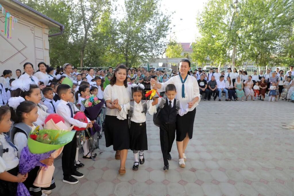 Район ҳәкими Ж.Ермашев “Жүзимзар” мәҳәллесинде жайласқан 32-санлы мектепте өткерилген байрам салтанатында болып, жаңа 2025-2026-оқыў жылын баслап атырған оқыўшылар ҳәм мектеп жәмәәтин қызғын қутлықлады. Илаж даўамында 1-классқа қәдем таслап атырған балаларға Президент саўғалары салтанатлы түрде тапсырылып 11-класс оқыўшылары ушын биринши “Келешек сааты” өткерилди.