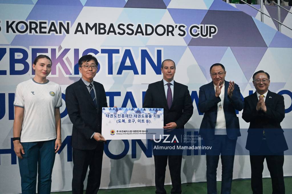 Онда спорт министри Адҳам Икромов, мәмлекетимиз таэквондо WT ассоциациясының баслығы Шерзод Тошматов ҳәм Қубла Кореяның Өзбекстандағы Айрықша ҳәм толық ҳуқықлы елшиси Вон До Ён қатнасты.