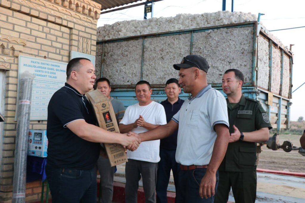 Салтанатлы мәресимде район ҳәкими А.Тажетдинов, Қарақалпақстан Фермерлери кеңеси баслығы И.Юнусовлар шығып сөйлеп, пахта атызларында топланған зүрәәтти қысқа мүддетте, бир де ханасын зая етпестен жыйнап алыўға шақырды ҳәм бириншилерден болып пахта тапсырған фермер хожалықларына саўғалар тапсырылды.