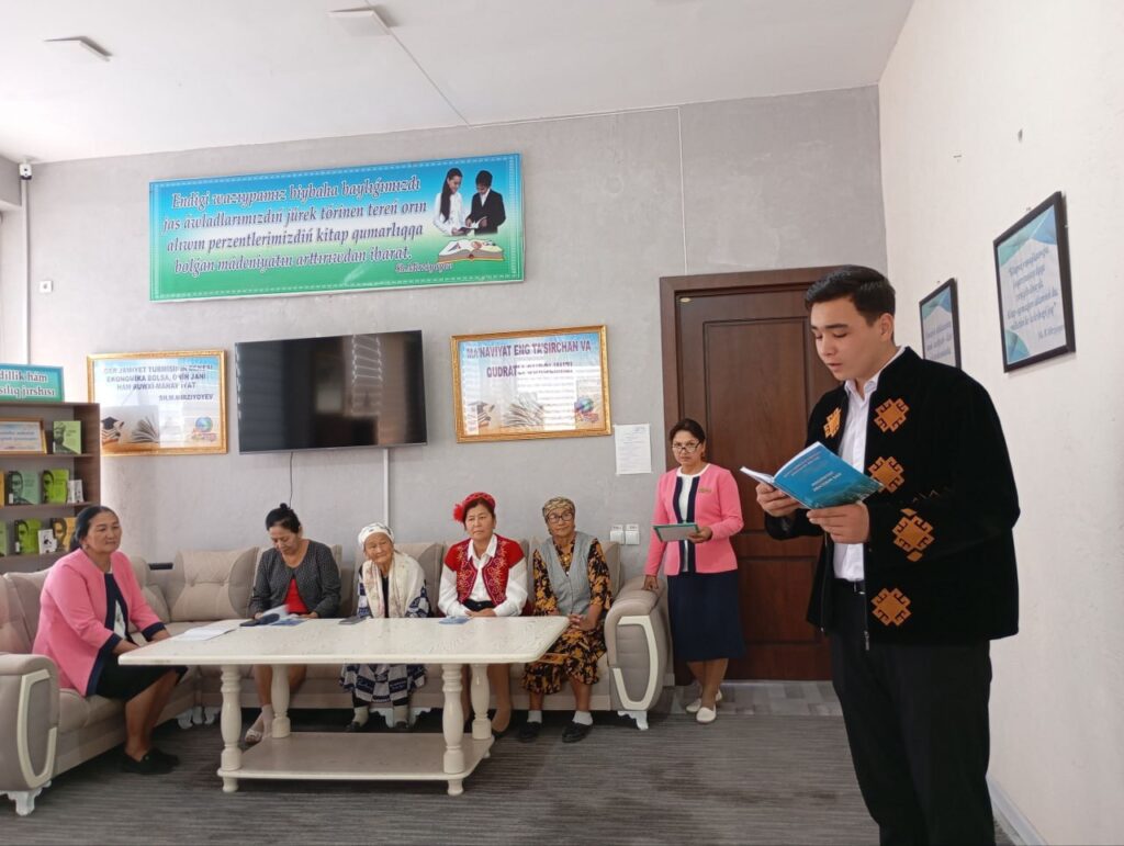 Нөкис районындағы Мәлимлеме-китапхана орайында бул бағдарда бир қатар илажлар алып барылмақта. Атап айтқанда, орайымызда өткен айдың өзинде Өзбекстан Республикасы Президентиниң 2023-жыл 21-декабрьдеги ”Шаңарақларды беккемлеў ҳәм ҳаял-қызлардың белсендилигин арттырыў бойынша қосымша илажлар ҳаққында»ғы қарарына тийкарланып “Китапқумар ана – ибрат мектеби” атамасында китапқумар аналар менен сәўбетлесиў кешеси болып өтти.
