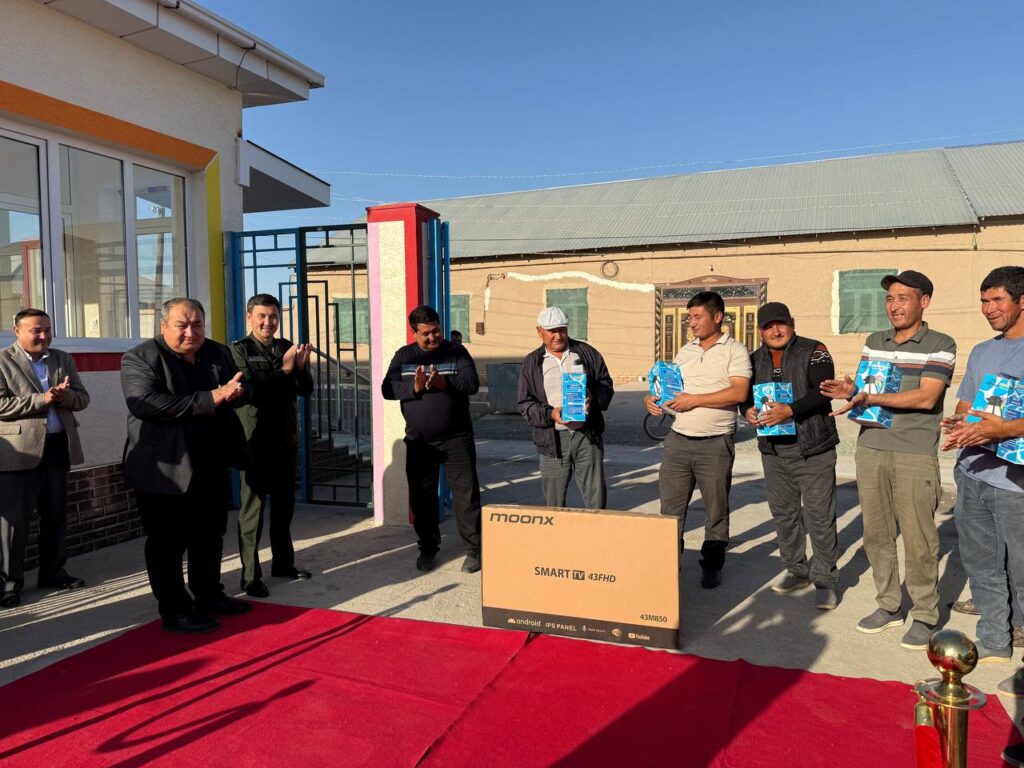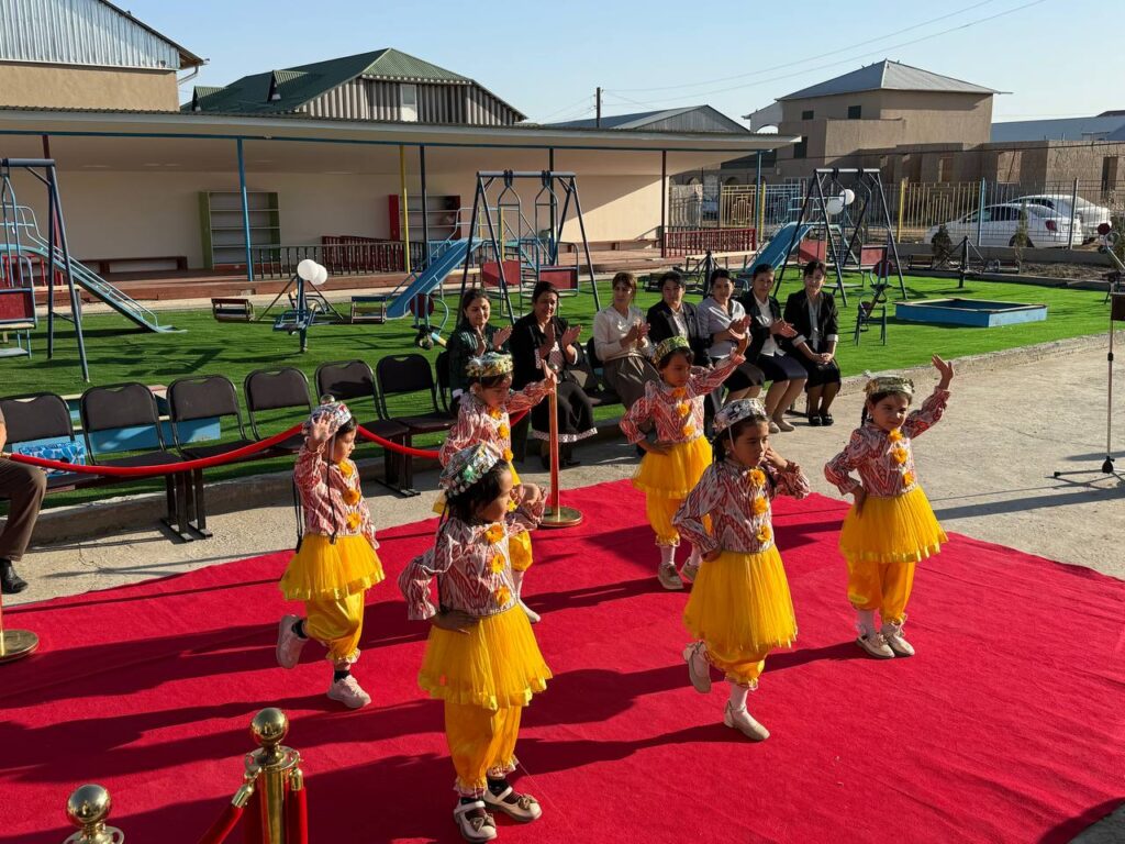 Жаңа мектепке шекемги билимлендириў шөлкеминиң қурылыс жумыслары мәмлекетимиз басшысының арнаўлы қарары тийкарында Ислам раўажланыў банки ҳәм OPEK халықаралық фондының қатнасыўындағы «Аўыллық жерлерди турақлы раўажландырыў» жойбары шеңберинде әмелге асырылды. Қурылыс жумысларының сапалы ҳәм тез жуўмақланыўында «Zamin qurilish trans servis» жуўапкершилиги шекленген жәмийети үлкен үлес қосты.