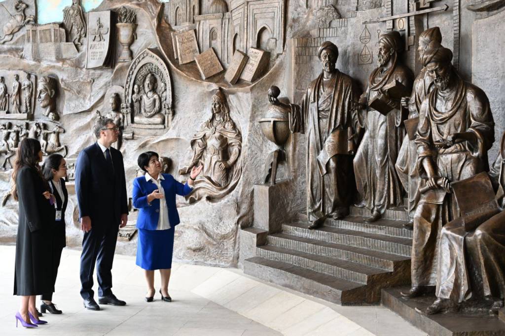 Комплекс пенен қысқаша танысыў даўамында Сербия делегациясының ўәкиллерине бул ансамбльдиң мазмуны ҳәм архитектуралық шешимлери ҳаққында мағлыўмат берилди.