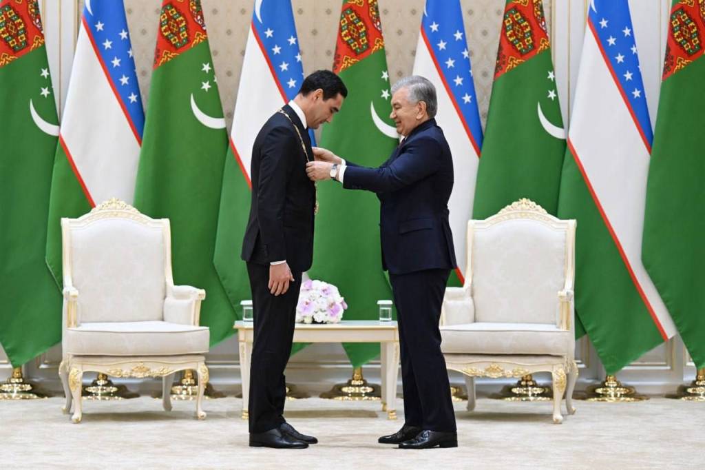 Көксарай резиденциясында Түркменстан Президенти Сердар Бердимуҳамедовқа Өзбекстан Республикасының жоқары мәмлекетлик сыйлығы – “Олий Даражали Дўстлик” орденин тапсырыў мәресими болып өтти.