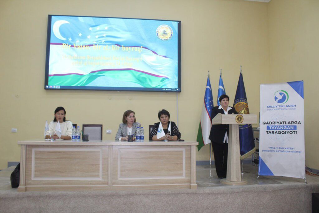 Илажда Қарақалпақстан Республикасы Жоқарғы Кеңесиниң депутаты Ольга Ниязова қатнасып, мәмлекетлик байрақтың тарийхый әҳмийети, оның елимиз турмысындағы орны ҳәм жасларды ўатансүйиўшилик руўхында тәрбиялаўдағы роли ҳаққында өз пикирлерин билдирди.