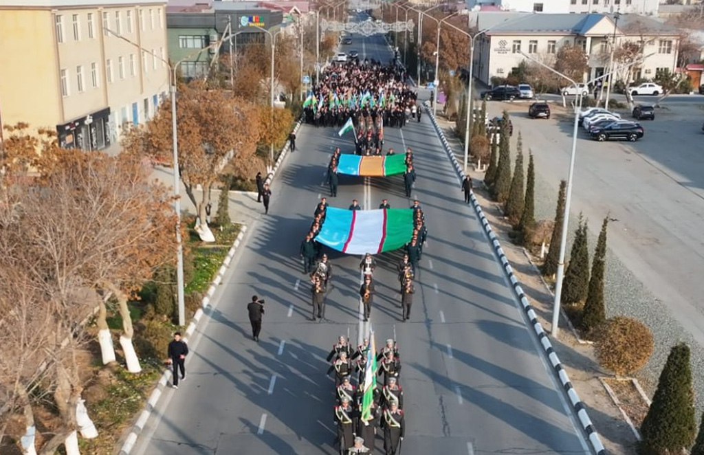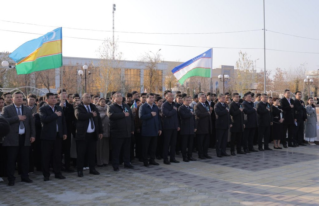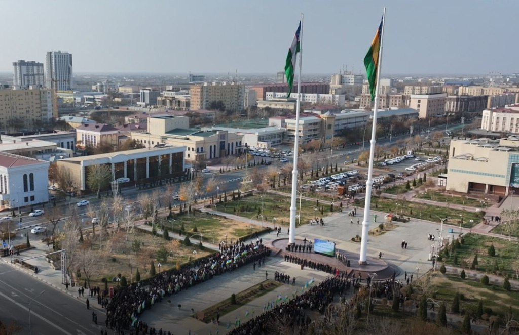 Бүгин Нөкис қаласының орайында орнатылған Өзбекстан ҳәм Қарақалпақстан Республикаларының мәмлекетлик байрақлары жанында «Өзбекстан Республикасының мәмлекетлик байрағы ҳаққында»ғы Нызамы қабыл етилген күн мүнәсибети менен байрам илажы болып өтти.