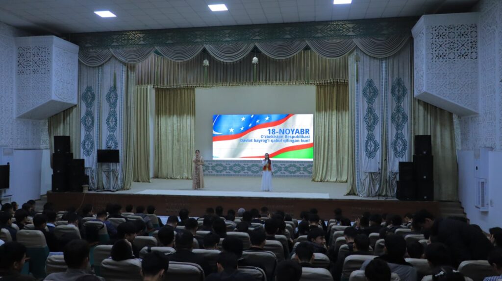 18-ноябрь – Өзбекстан Республикасының «Мәмлекетлик байрақ ҳаққында»ғы нызамы қабыл етилген күн мүнәсибети менен Бердақ атындағы Қарақалпақ мәмлекетлик университетинде “Бир Ўатан, бир ел, бир байрақ” идеясы астында руўхый-ағартыўшылық илаж болып өтти.