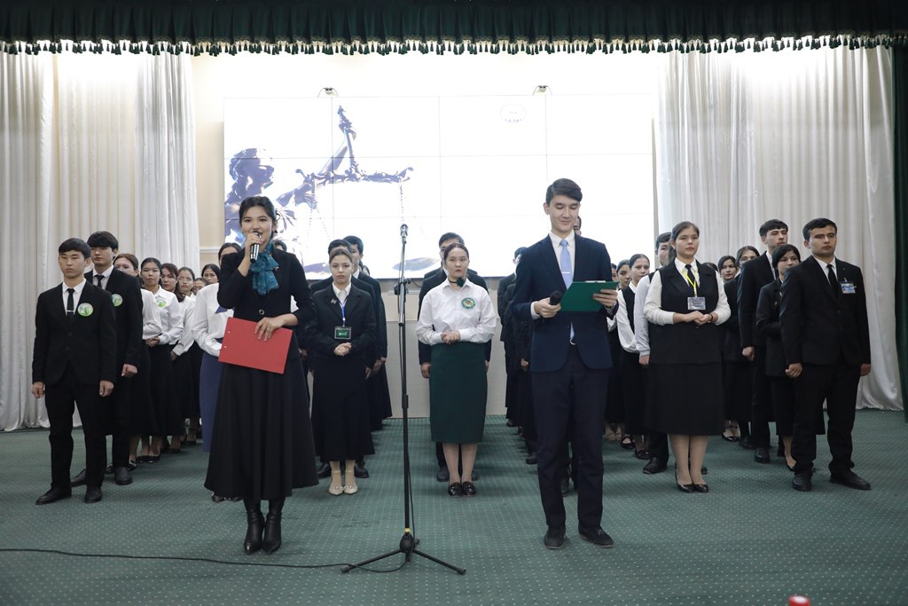 Мәмлекетимизде әмелге асырылып атырған кең көлемли реформаларда студент-жаслардың белсене қатнасыўын тәмийинлеў, жоқары мәнаўиятлы, ҳуқықый жақтан саўатлы, еркин пикирлейтуғын жасларды тәрбиялаў, адамзатқа жат болған иллетлерге қарсы гүресиў иммунитетин қәлиплестириў, бос ўақытларын мазмунлы өткериў, сондай-ақ, жаслардың жаңаланған Конституция бойынша билимлерин баҳалаў және хошаметлеў мақсетинде шөлкемлестирилген таңлаўда «Жас демократлар», «Жас прогресслер», «Адолат», «Юстиция», «Фемида», «Демократлар», «Туран» командалары сәлемнама, сораў-жуўап ҳәм сахналық көринис сыяқлы шәртлер бойынша өзлериниң конституциялық билимлерин, көнликпелерин сынақтан өткерди.