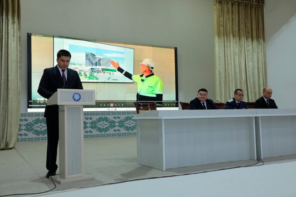 Буннан соң Қарақалпақстан Республикасы Жоқарғы Кеңеси Баслығының орынбасары Р.Нуразизов шығып сөйлеп, жыйналғанларды Өзбекстан Республикасы Конституциясының қабыл етилгенлигиниң 33 жыллығы менен қутлықлады. Атап өтилгениндей, елимиздиң дүнья сиясий майданында ғәрезсиз мәмлекет сыпатында өз орнына ийе болыўы, раўажланыў жолын белгилеп, жылдан-жылға абырайының артып барыўы, сондай-ақ, халықтың абаданлығын тәмийинлеўде – бас нызамымыздың орны ҳәм әҳмийети жоқары. Онда белгиленген тийкарғы принциплер, ҳәр бир пуқараның ҳуқықлары менен еркинликлерин тәмийинлеўдеги роли айрықша.