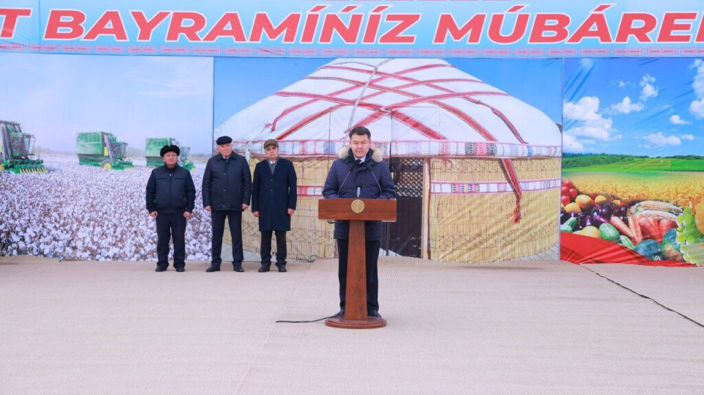 Байрамның ашылыў салтанатында Қарақалпақстан Республикасы Жоқарғы Кеңесиниң Баслығы Аманбай Орынбаев шығып сөйлеп, жыйналғанларды Аўыл хожалығы хызметкерлери күни байрамы менен қутлықлады.