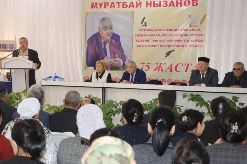 Өткерилген салтанатлы илажда Муратбай Нызанов шығып сөйлеп, бундай салтанатлы кешени шөлкемлестиргени ушын республика ҳүкимети, Қарақалпақстан жазыўшылар аўқамы ҳәм район басшыларына үлкен рахмет айтып, өзи оқыған 1-санлы улыўма орта билим бериў мектебине 10 томнан ибарат китапларын саўға етти.
