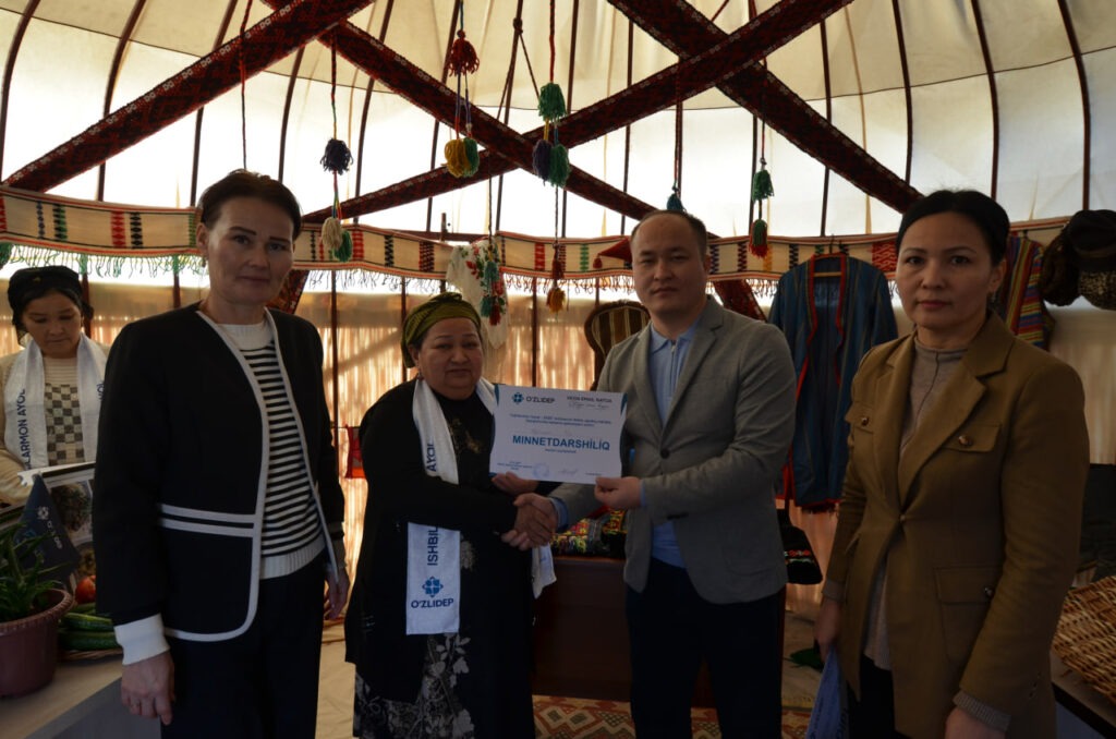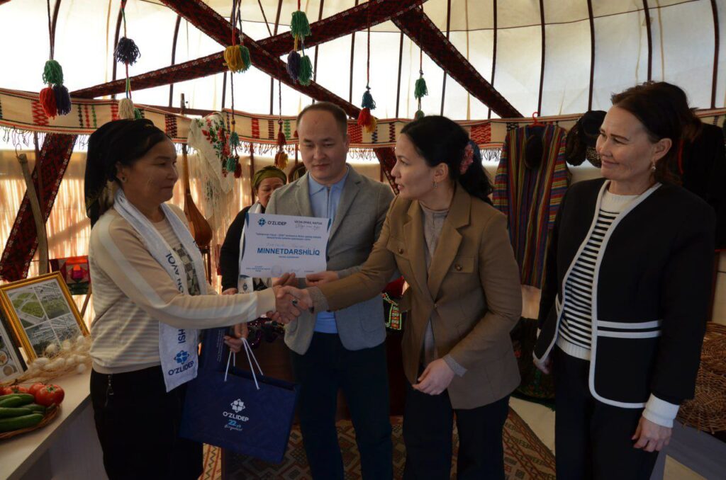ӨзЛиДеП Қарақалпақстан Республикасы Ҳаял-қызлар қанаты ҳәм Нөкис қалалық Кеңеси менен биргеликте Нөкис қаласында жайласқан “Наўқан бағ” мәкан пуқаралар жыйынында таңлаў болып өтип, онда мәҳәлледе хызмет көрсетип атырған исбилермен ҳаял-қызлар өзлериниң әмелге асырған бизнес жойбарлары, қол мийнети ҳәм өндириске қаратылған басламалары менен қатнасты.