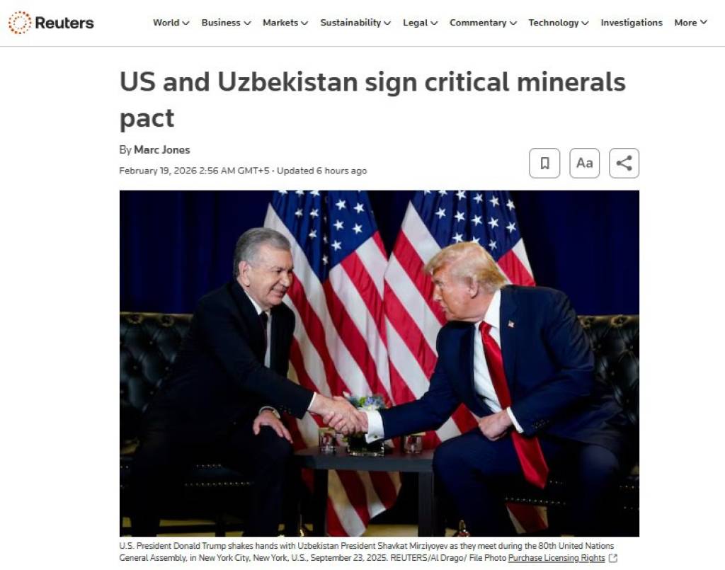 “Reuters”: АҚШ ҳәм Өзбекстан әҳмийетли келисимге еристи