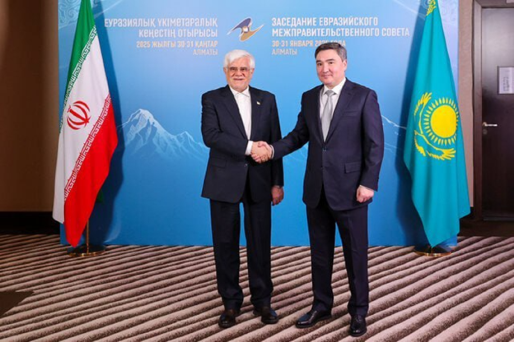 Olmaotada bo‘lib o‘tgan Yevrosiyo hukumatlararo kengashi yig‘ilishida Qozog‘iston Bosh vaziri O‘ljas Bektenov va Eron vitse-prezidenti Muhammad Rizo Orif o‘rtasida uchrashuv bo‘lib o‘tdi. Muzokara chog‘ida savdo-iqtisodiy hamkorlikni, jumladan, transport, logistika va sarmoyaviy yo‘nalishda chuqurlashtirish masalasi muhokama qilindi. Davlat rahbarlari tomonidan belgilangan o‘zaro tovar ayirboshlash miqdorini 3 milliard dollarga yetkazish maqsadiga alohida e’tibor qaratildi.
