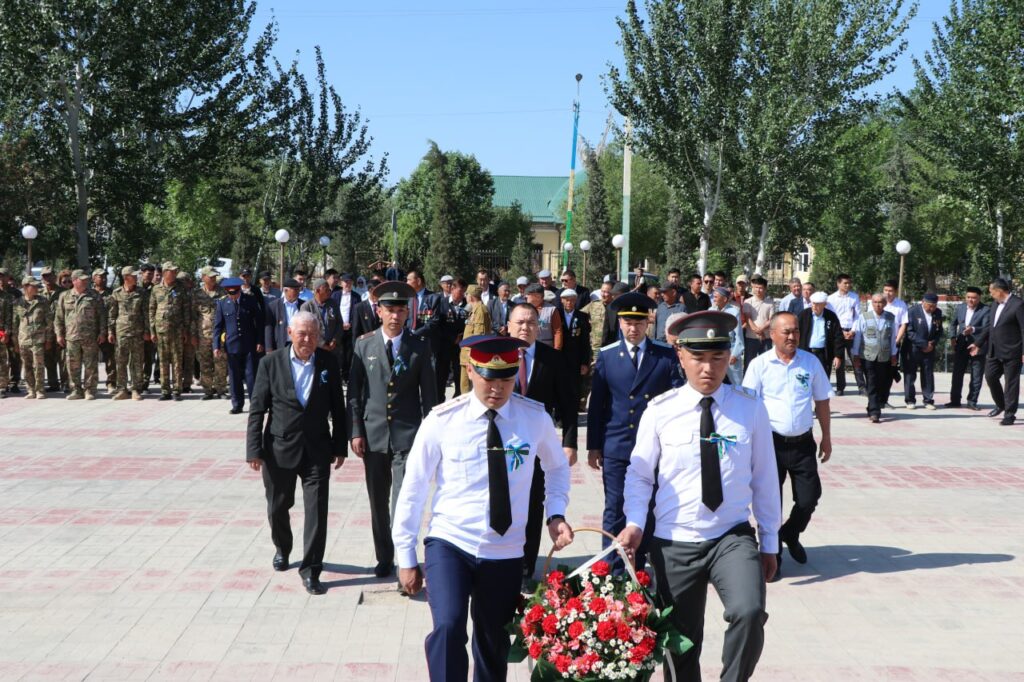 Sońınan ekinshi jer júzilik urısta qurban bolǵanlardıń esteliklerine keń jámiyetshilik wákilleri tárepinen gúlsheńberler qoyılıp, olarǵa húrmet kórsetildi.