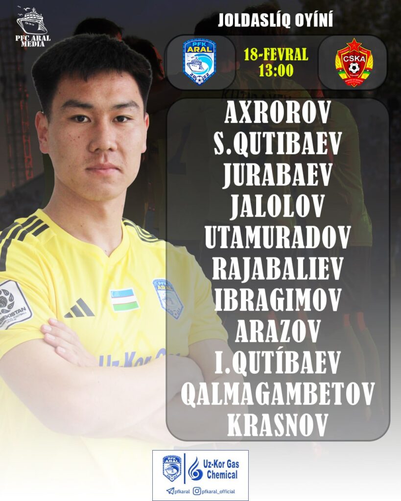 Al, búgin bolsa, «Aral» klubı futbolshıları Tájikstannıń «CSKA Pamir» komandasına qarsı maydanǵa tústi. Qızıqlı ótken oyınnıń birinshi taymında dárwazalarǵa gol urılmadı. Ekinshi taymda bolsa, hár eki komanda da tez-tezden qáwipli hújimler shólkemlestirdi hám oyınnıń 67-minutında tájikstanlı futbolshılar «Aral» dárwazasın anıq nıshanǵa alıwǵa eristi. Bunnan soń komandamız aǵzaları da oyınǵa ayrıqsha pát endirip, 71-minutta tájiriybeli Salamat Qutıbaev qarsılas dárwazaǵa gol urdı hám aradaǵı esaptı teńlestiriwge miyasar boldı.