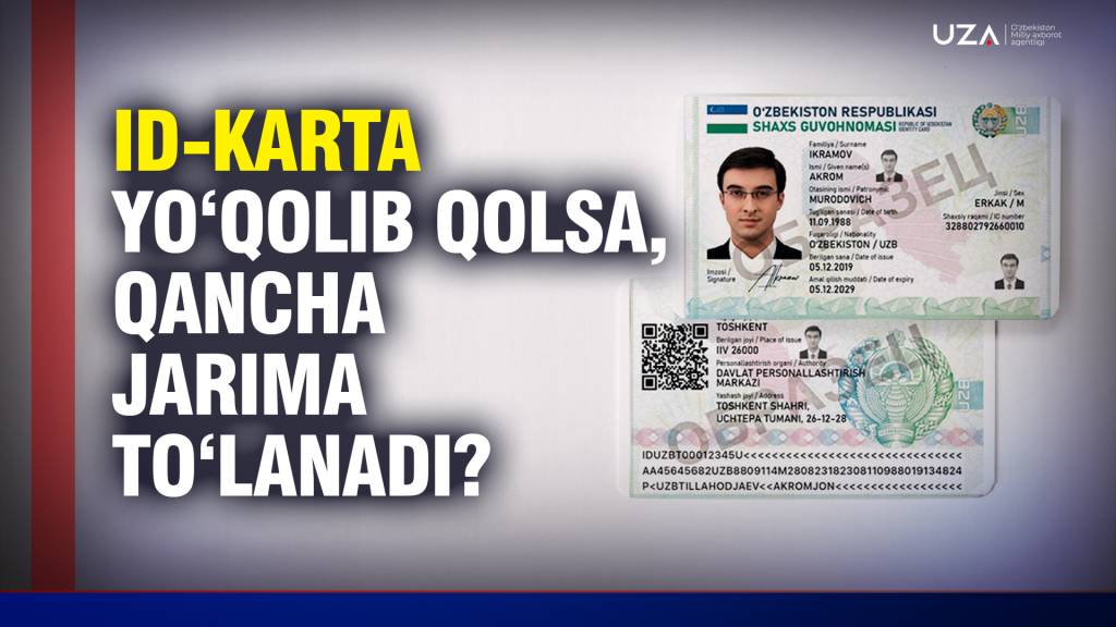 Демак, ID-карта йўқотилгани учун 170 минг сўмдан 1 миллион 20 минг сўмгача жарима қўлланиши мумкин.