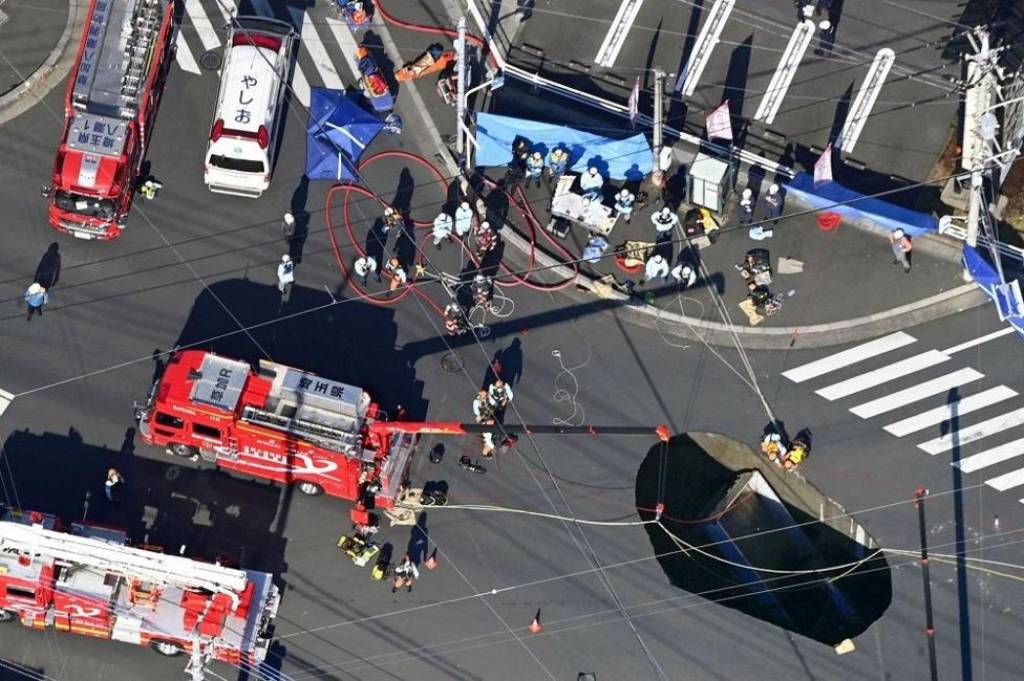 Кун чиқар юрт пойтахти Токио яқинидаги Яшио шаҳри кўчаларидан бирида катта ўра пайдо бўлди. Сешанба куни бахтсиз ҳодиса юз бериб, бир юк машинаси чуқурга тушиб кетди. Ён-атрофдаги йўллар ҳам емирилиши қутқарув ишларига тўсқинлик қилди. Расмийлар шу ҳудуддаги 200 хонадонни кўчириш бўйича кўрсатма берган. Воқеа ҳақида BBC хабар тарқатди.