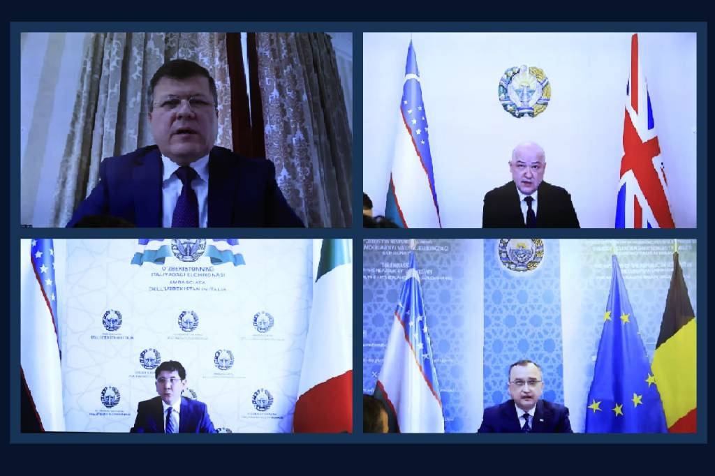 Дастлаб Ўзбекистон Республикасининг Бельгия, Буюк Британия, Испания ҳамда Италия давлатларидаги элчихоналари томонидан 2023–2024 йилларда икки томонлама ҳамкорликни ривожлантириш, инвестицияларни жалб этиш, миллий маҳсулотлар экспорти ҳажмини ошириш ва туризм фаолиятига кўмаклашиш борасида амалга оширилган ишлар ҳолати кўриб чиқилди.