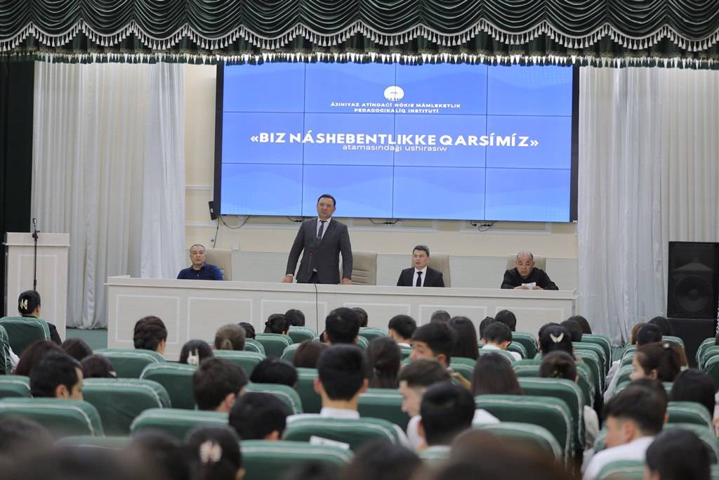 Ажиниёз номидаги Нукус давлат педагогика институтида бўлиб ўтган учрашувда Ўзбекистон Республикаси Президенти Администрацияси ҳузуридаги Наркотикларни назорат қилиш миллий маркази, Республика руҳий саломатлик маркази вакиллари томонидан ёшларга гиёҳвандлик ва психотроп моддаларнинг зарарли оқибати ҳақида кенг тушунчалар берилди.