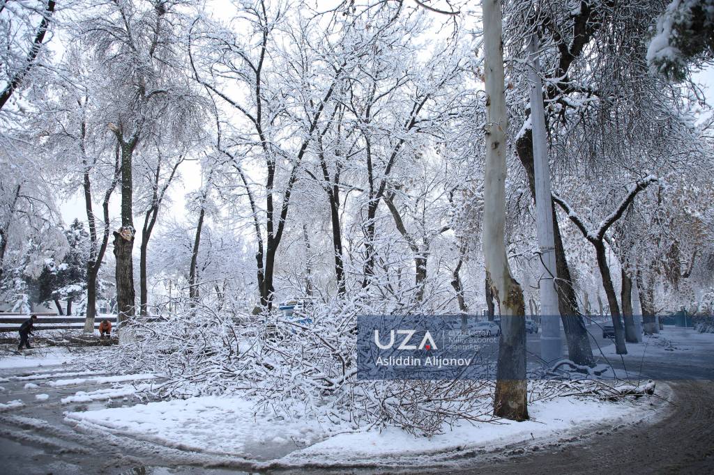 Қишнинг ўз инжиқликлари бор, деганларидек туни билан ёққан қордан сўнг баъзи жойларда дарахтларнинг синиши ҳам кузатилди. Гарчи бундай ҳолатлар учраб турсада, қишда қор мўл ёғишини истайверамиз.
