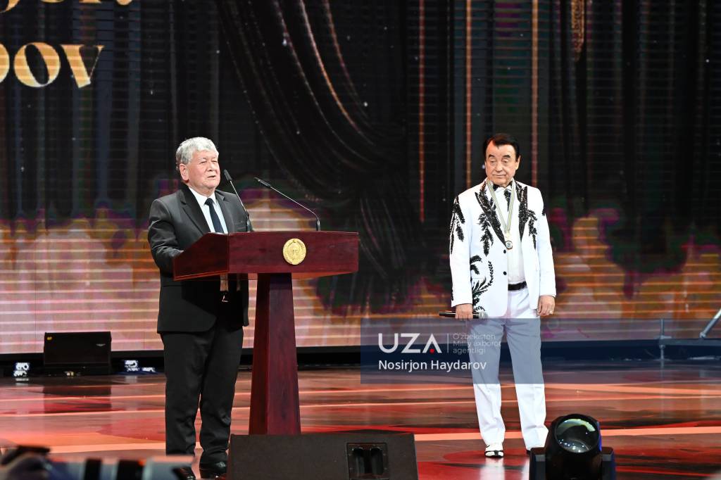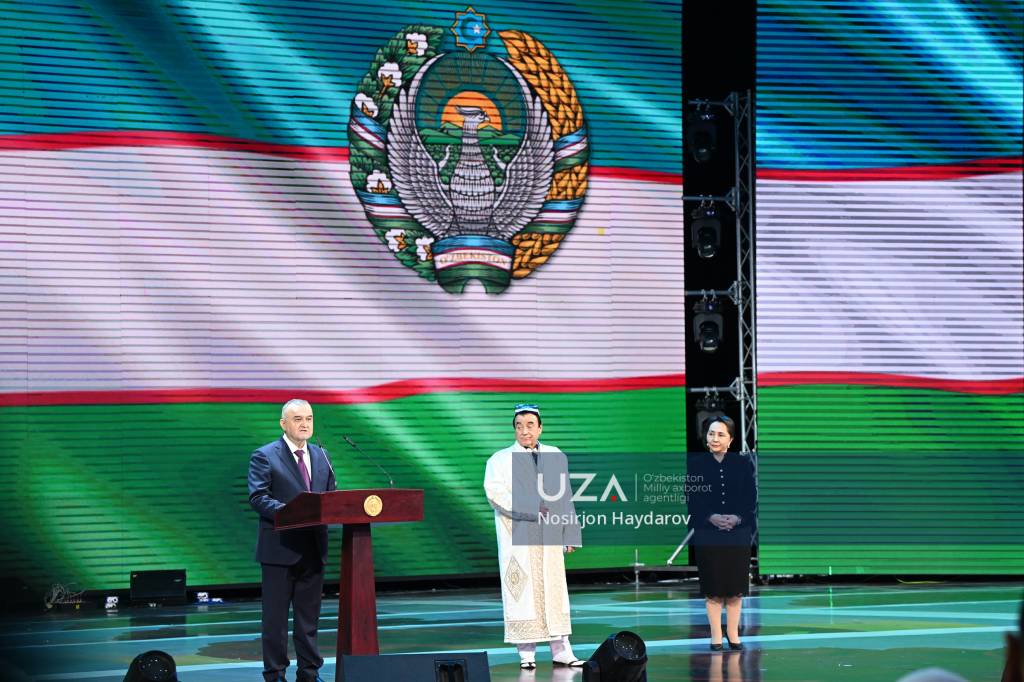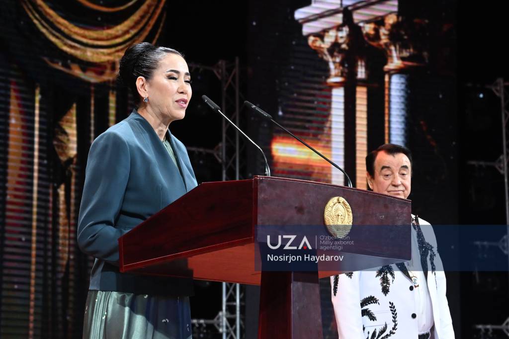 Ўзбекистон Республикаси Олий Мажлиси Сенати Раиси Танзила Норбоева мукофотни санъаткорга топширди.
