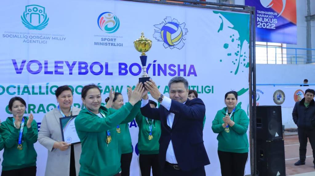Нукус шаҳридаги 1-сонли спорт мактабида байрам муносабати билан Ижтимоий ҳимоя миллий агентлиги Қорақалпоғистон Республикаси бошқармасига қарашли муассаса ва ташкилотларда ишловчи хотин-қизлар ўртасида волейбол бўйича спорт мусобақа бўлиб ўтди.