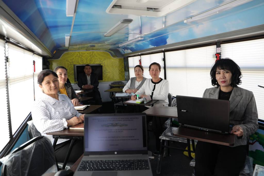 Жумладан, махсус автобус Нукус шаҳрига узоқ “Қаратаў” маҳалла фуқаролар йиғини ҳудудида жойлашган 44-сонли давлат мактабгача таълим ташкилотига бориб, бу ердаги педагогларга ўзлари яшайдиган ва ишлайдиган жойларидан узоқлашмаган ҳолда узлуксиз касбий ривожланиши, билимларини янгилаши учун имконият яратилди.