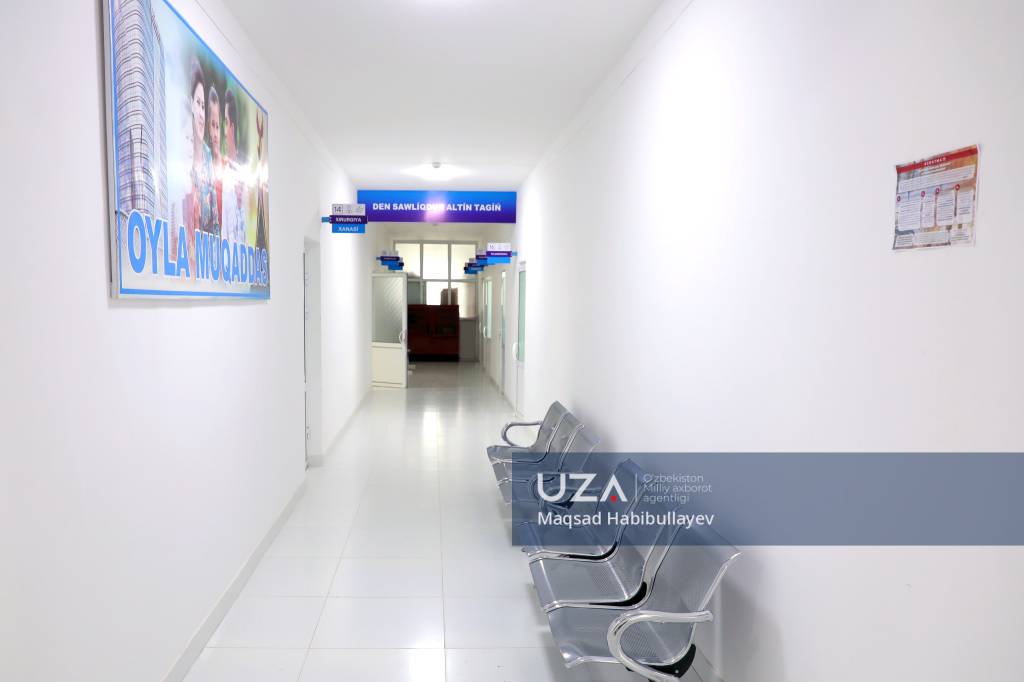 Рўйхатдан ўтиш, УТТ, ЭКГ, лаборатория, автоклаб, стамотология, кундузги даволаш, аёлларни ва болаларни кўрикдан ўтказиш хоналарида зарур шарт-шароит яратилган.