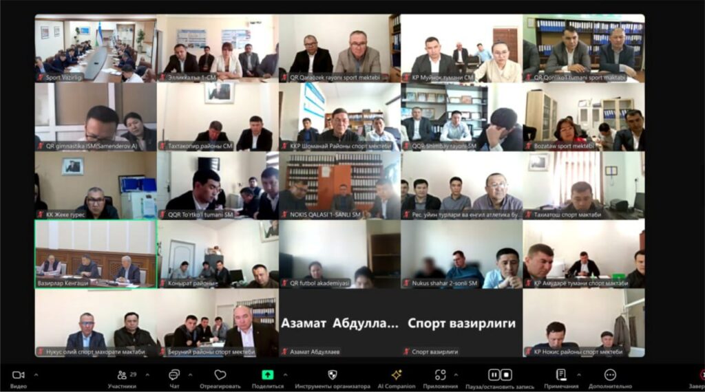 Шундан сўнг Спорт вазири Адҳам Икрамов Қорақалпоғистон Республикасига ташрифи давомида Қорақалпоғистон Республикаси Вазирлар Кенгашида видеоселектор йиғилишини ўтказди.